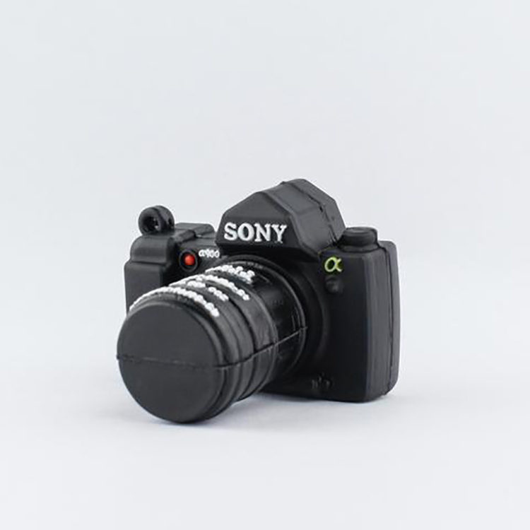 La bellissima serie alfa di Sony Chiavetta USB a forma di fotocamera con marcature dettagliate, un'eccellente rappresentazione delle storie, dei ricordi e dei momenti catturati nella tua mente ma organizzati e organizzati qui nel tuo ricordo alternativo.