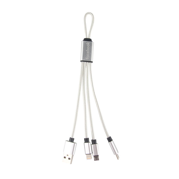 Nasz nylonowy pleciony kabel USB jest wyposażony w ładowarkę w 3 żywych kolorach. Jest to kabel ładowarki USB 3 w 1 z trzema najpopularniejszymi adapatorami - mikro, iPhone Lightning,i łącznik typu c. Obudowa z nylonu może być oznakowana maksymalnie 2 kolordami lub wygrawerowana, aby uzyskać dodatkowy efekt.